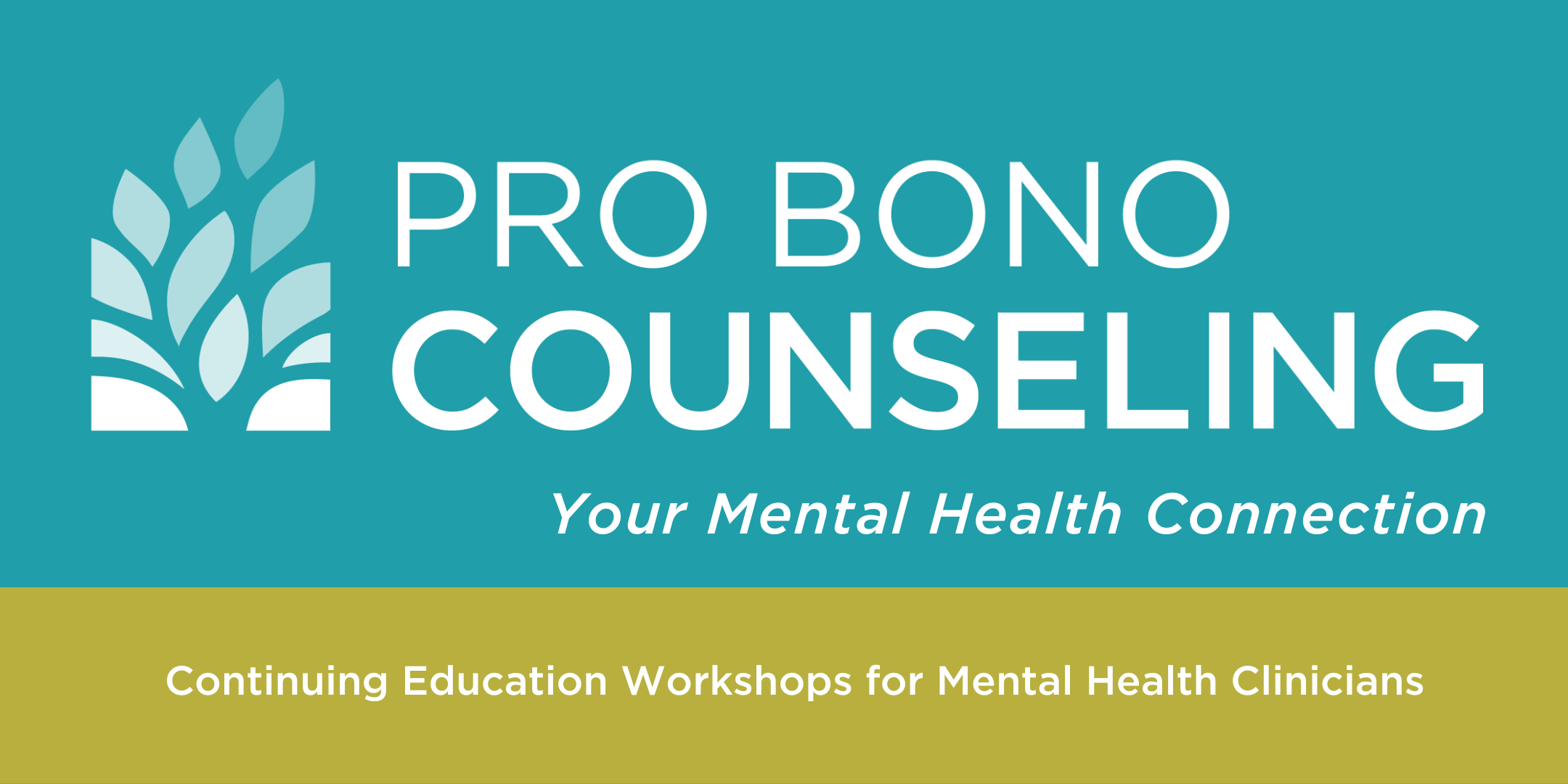 Pro Bono Counseling (PBC) is dedicated to providing a positive continuing education experience for everyone of all backgrounds and identities. We do not tolerate disrespectful behavior or harassment of workshop participants, facilitators, or PBC staff in any form. We do not tolerate discrimination or harassment on the basis of characteristics that include but are not limited to: gender, gender identity and expression, age, sexual orientation, disability, physical appearance, body size, citizenship, veteran status, pregnancy status, race, ethnicity, or religion. Anyone asked to stop unacceptable behavior is expected to comply immediately. If a participant engages in unacceptable behavior, PBC may take any action it deems appropriate, including warning or expelling the offender from the event with no refund.