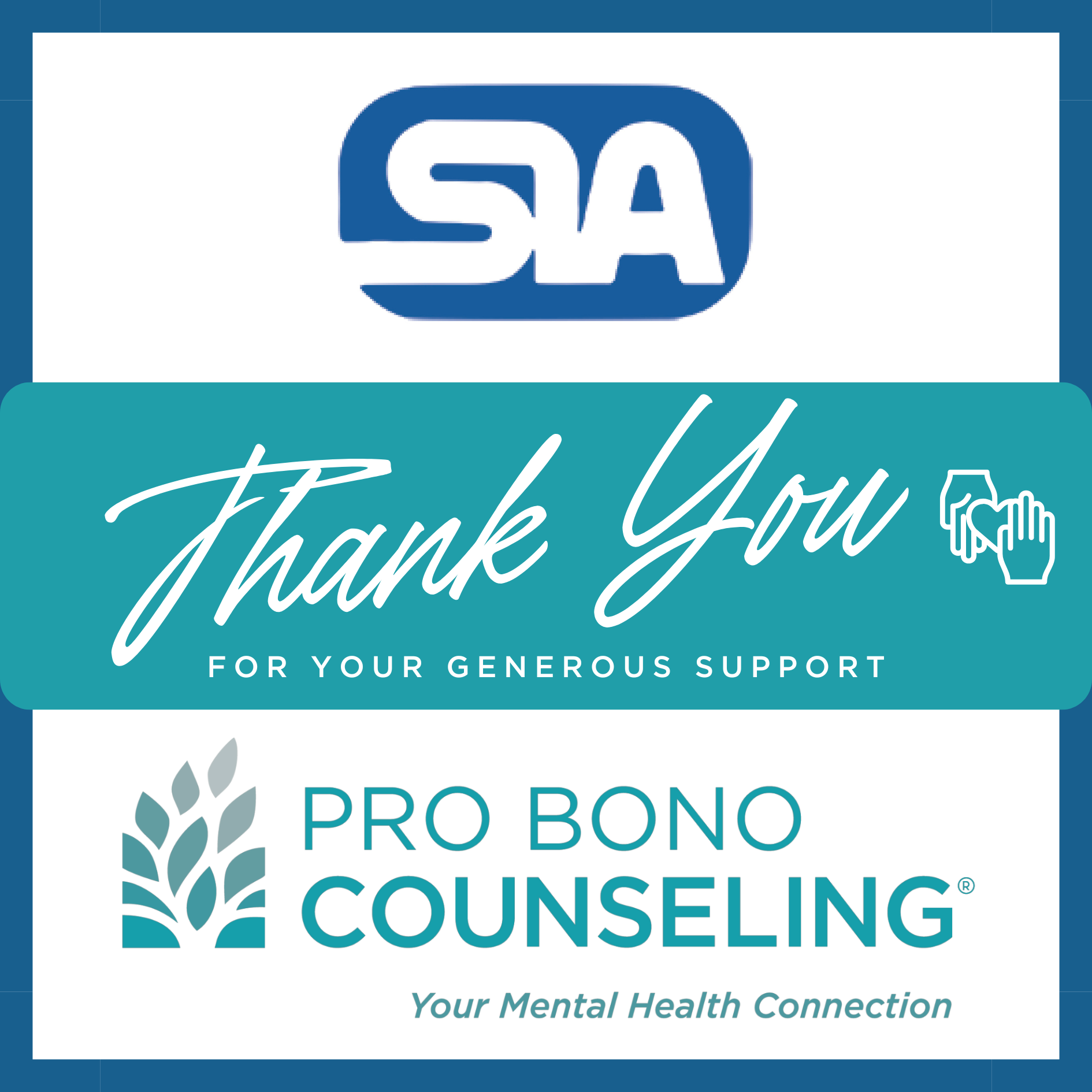 Thank you to Schoenfeld Insurance Associates (SIA) for supporting Pro Bono Counseling! Each year the insurance group recognizes important local non-profits who do great work in the community. Pro Bono Counseling is grateful to be selected as an award recipient for the fifth year in a row. The donation will support our mission to remove barriers and provide relief by connecting Marylanders to mental health support.